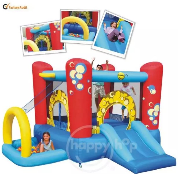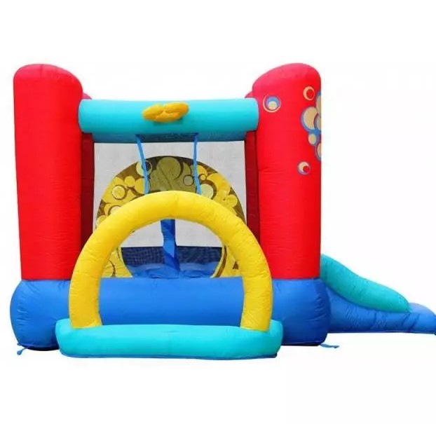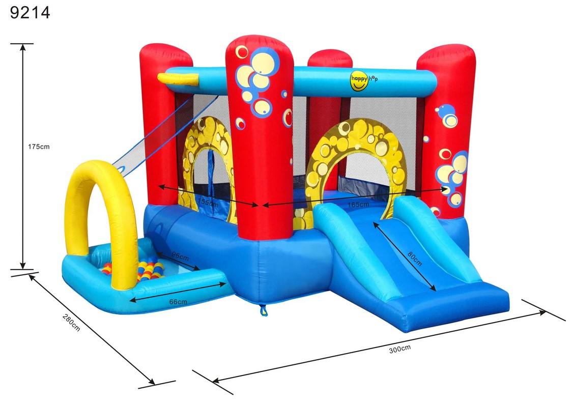 Ez a vidám színekkel, buborékos mintával rendelkező légvár a kicsik egyik kedvence – mind bel- mind kültéren kiválóan használható. A csúszda, a kosárpalánk és a labdatenger extra élményt nyújtanak a gyerekeknek. Unalmas, esős és hideg napokon akár a szobában is felállítható.