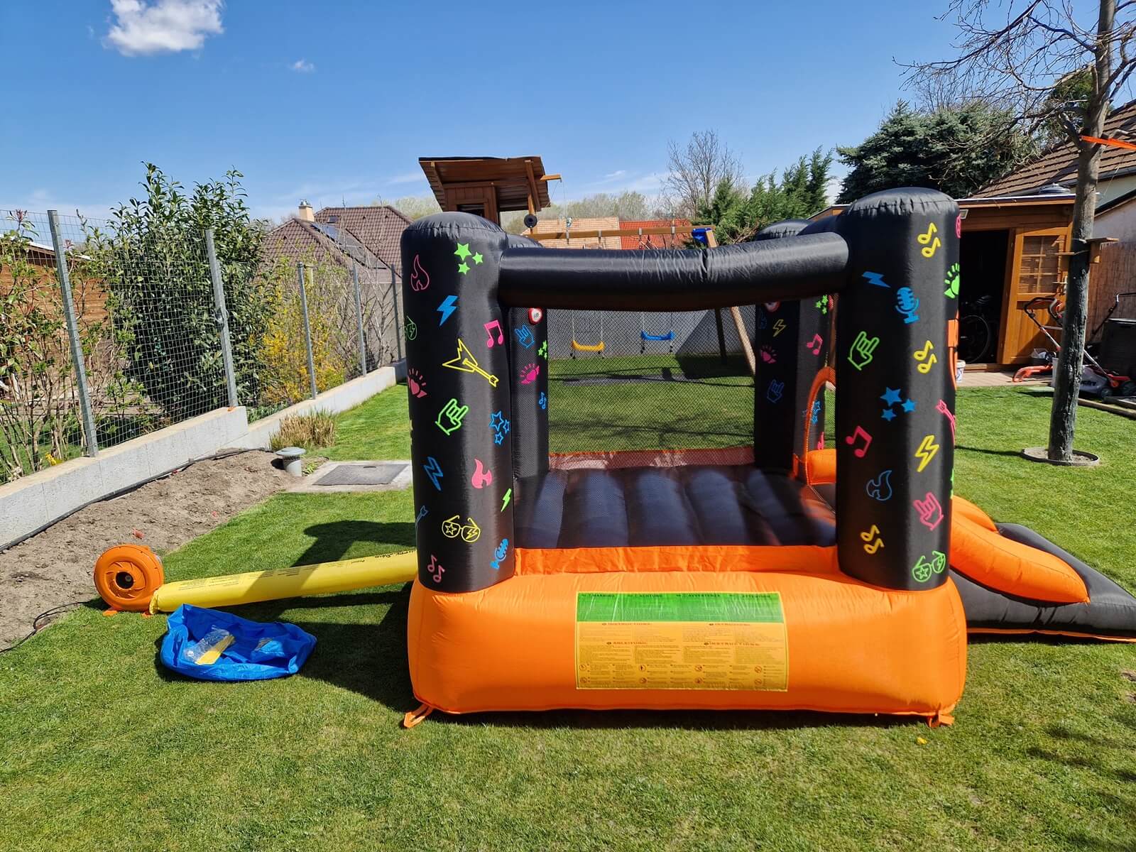 A Happy Hop Rock Interaktív Légvár egészen új szintre emeli a családi használatú ugrálóvárakat, így a játék még az eddiginél is szórakoztatóbb lesz! Ebben a nagyszerű termékben nemcsak ugrálni és csúszdázni lehet, hanem a nyolc érzékelő valamelyikét megérintve a gyerekek különböző fény- és hanghatásokkal kísérve élvezhetik a mozgást. Igazán vagány színeivel a kisfiúk és a kislányok kedvence lesz! Az ugrálóvár mind bel- mind kültéren kiválóan használható, unalmas, esős és hideg napokon akár a szobában is felállítható. Az érintő érzékelők speciális menet segítségével rögzíthetőek a légvárhoz.